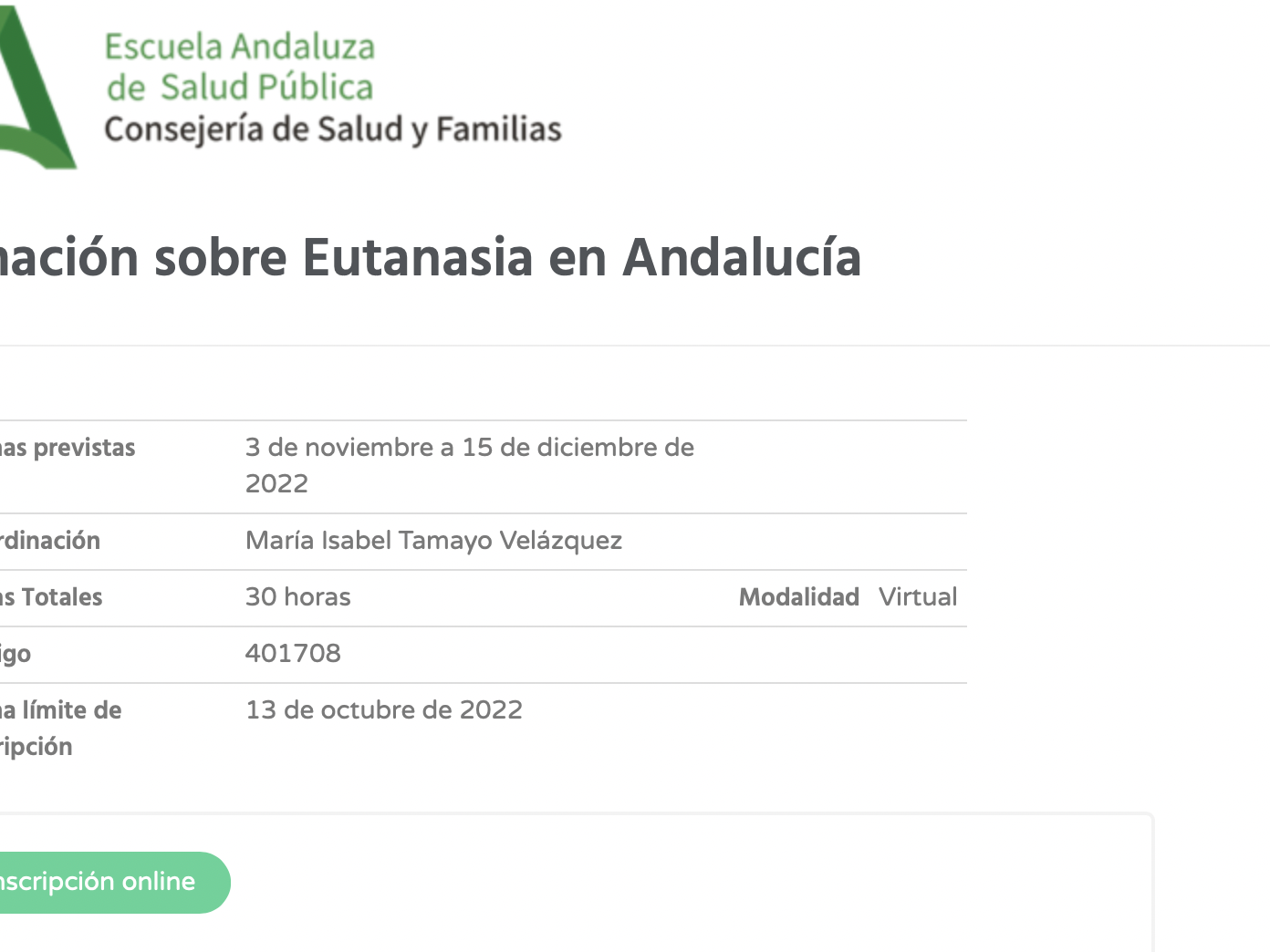 Actividades dirigidas a los profesionales de Complejo Hospitalario Puerta del Mar – San Carlos CURSO DE FORMACIÓN SOBRE LOS GRUPOS ELECTRÓGENOS EN LAS INSTALACIONES DEL HOSPITAL (1 edición) Plazas: 20 plazas Dirigido a: INGENIERO SUPERIOR/TEC.SUP.MANT.,INGENIERO TECNICO,TÉCNICO ESPECIALISTA EN MANTENIMIENTO Fechas de inscripción: 06/10/2022 al 27/10/2022 Fecha de inicio: 02/11/2022 Fecha de fin: 02/11/2022 Horas / Créditos: 6.0 horas / – créditos…