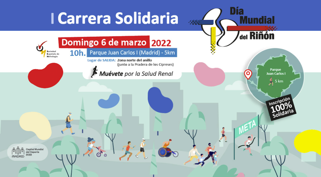 Os informamos de la 1ª Carrera Solidaria por el Día Mundial del Riñón el próximo 6 de marzo. Muévete por la salud renal.