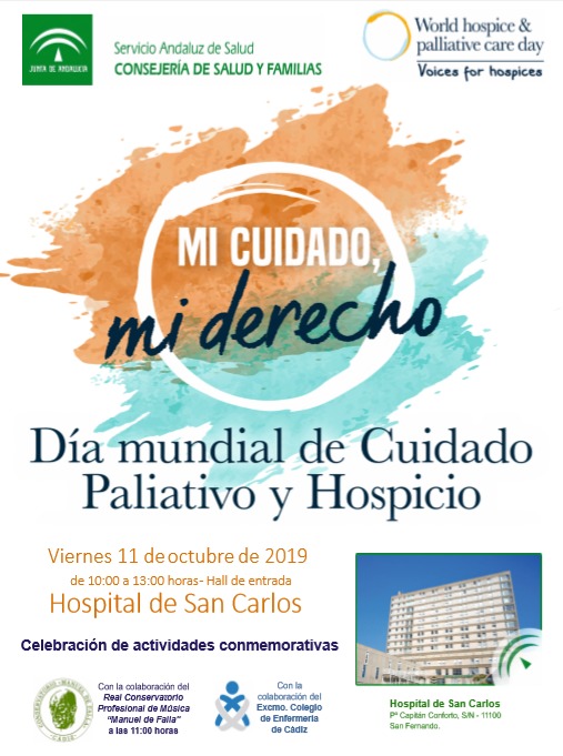 Celebración el próximo viernes 11 de octubre del Día de los Cuidados Paliativos en el Hospital de San Carlos y el Hospital Universitario Puerta del Mar, “Mi cuidado, mi derecho”.